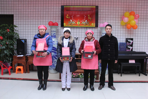 渭南市博思特家政集團(tuán)人力資源部經(jīng)理王德華先生為三等獎獲得者韓彩霞、 肖玲燕、 雷小幸三