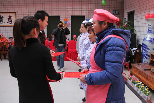 渭南市博思特家政集團(tuán)家政部主管賈芳為參與獎獲得者黨紅梅、呂軍利兩 組節(jié)目頒發(fā)證書及價值